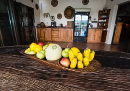 - Room 4: Luxury, spacious room - 3 x three-quarter beds. Separate shower and bath and double vanity in bathroom with adjacent toilet, all en-suite. Private patio overlooking the dam in Little Sand River. Room is fully equipped with linen, blankets, towels, hairdryer and safe.