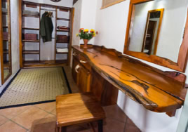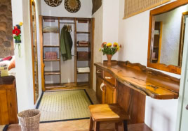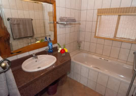 - Room 4: Luxury, spacious room - 3 x three-quarter beds. Separate shower and bath and double vanity in bathroom with adjacent toilet, all en-suite. Private patio overlooking the dam in Little Sand River. Room is fully equipped with linen, blankets, towels, hairdryer and safe.