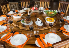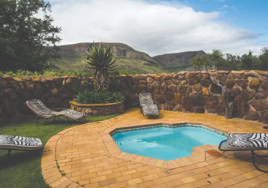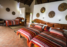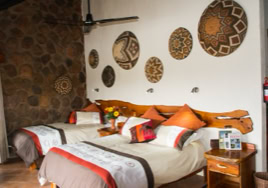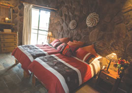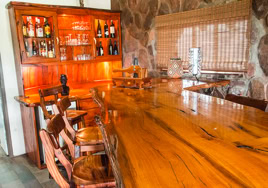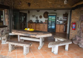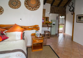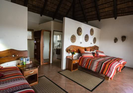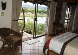 - Room 5: Luxury, spacious room - 3 x three-quarter beds. Separate shower and bath and double vanity in bathroom with adjacent toilet, all en-suite. Private patio overlooking the dam in Little Sand River. Room is fully equipped with linen, blankets, towels, hairdryer and safe.